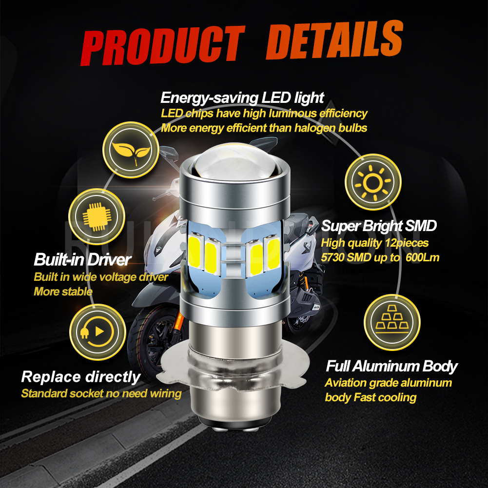 A high-performance, super bright LED bulb designed specifically for motorcycles and scooters, serving as the perfect upgrade from traditional halogen bulbs. This is an ideal Scooter Headlight upgrade due to its compact size and wide voltage range.